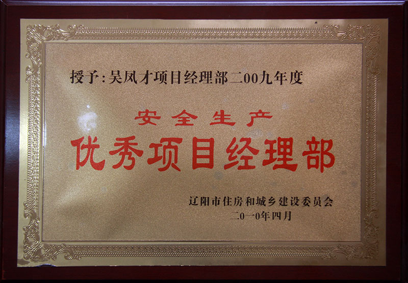 2009年度安全生產(chǎn)優(yōu)秀項目經(jīng)理部