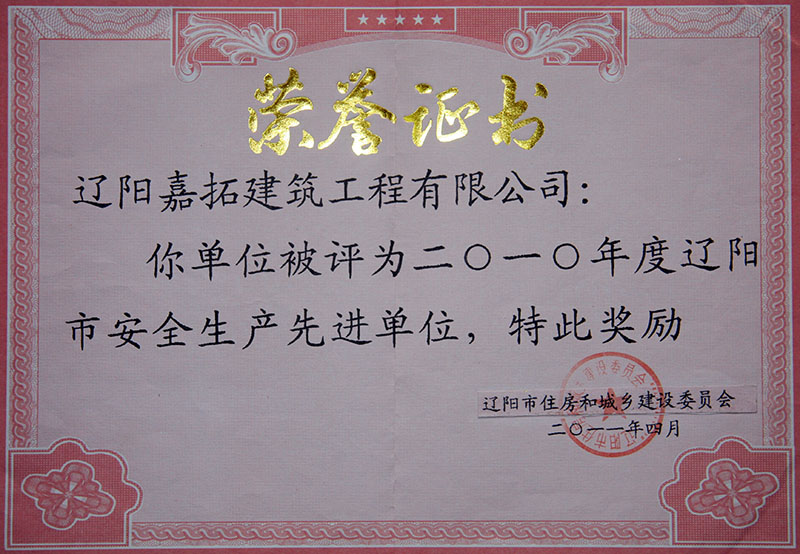 2010年度遼陽市安全生產(chǎn)先進單位