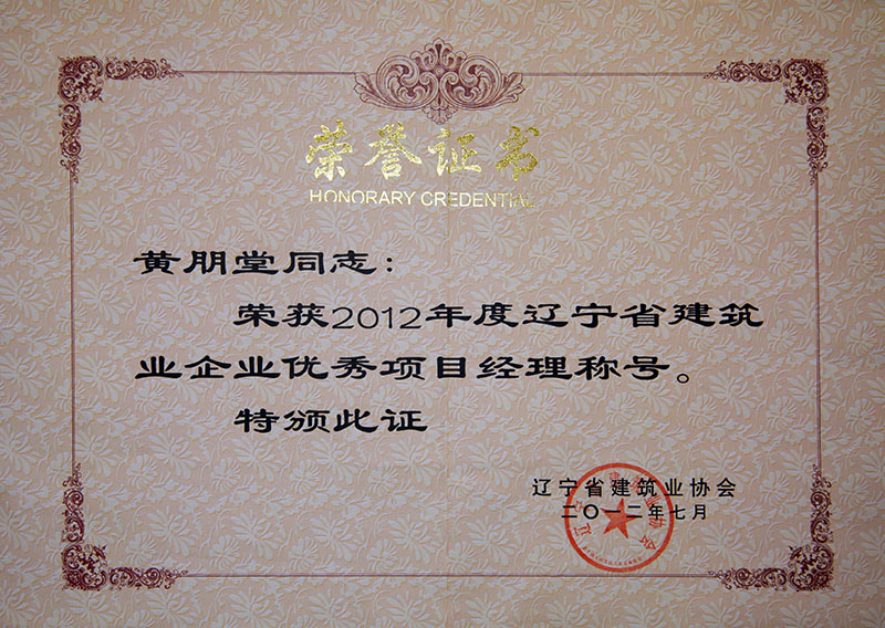 2012年度遼寧省建筑業(yè)企業(yè)優(yōu)秀項目經(jīng)理